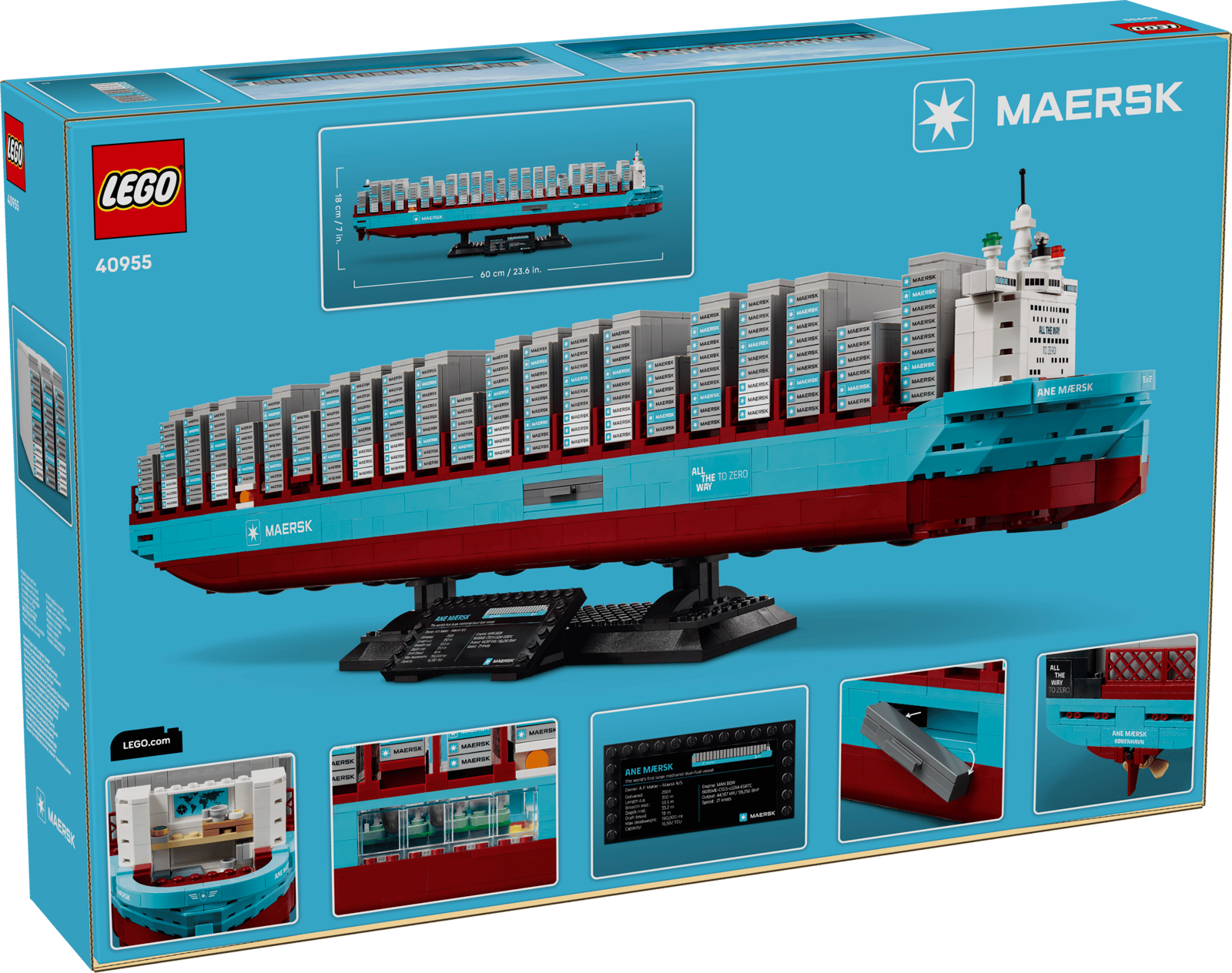 Begin een verzameling of breid je collectie uit met deze gedetailleerde LEGO® Maersk containerschip met dubbel brandstofsysteem (40955) bouwset voor volwassenen en tieners vanaf 12 jaar. De modelbouwset van het containerschip zit boordevol detailsen functies en bevat een open brug met bemanningsverblijven en transparante ramen in de machinekamer. Er zijn uitschuifbare loopplanken aan elke kant, bouwbare containers, een naamplaatje voor de displaybasis en nog veel meer. Inclusief bedrukte elementen en stickers. De set bevat 1513 onderdelen.